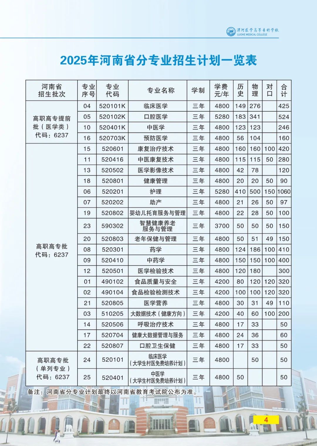 漯河医学高等专科学校2025年招生简章